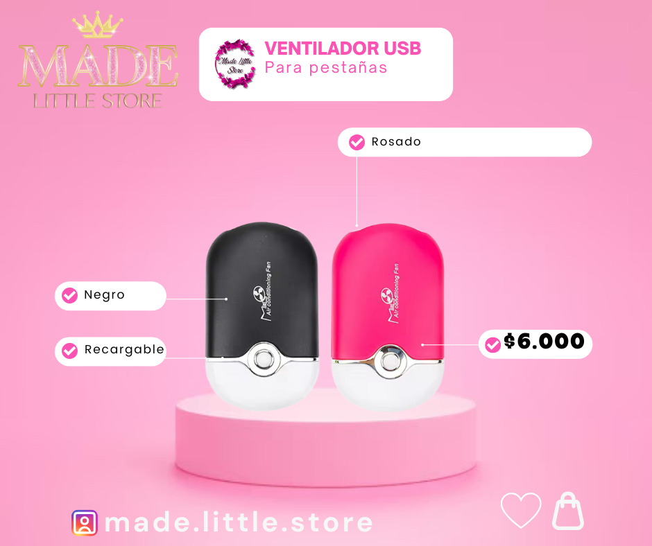 Ventilador para secar tus extensiones de pestañas disponible en 3 colores
